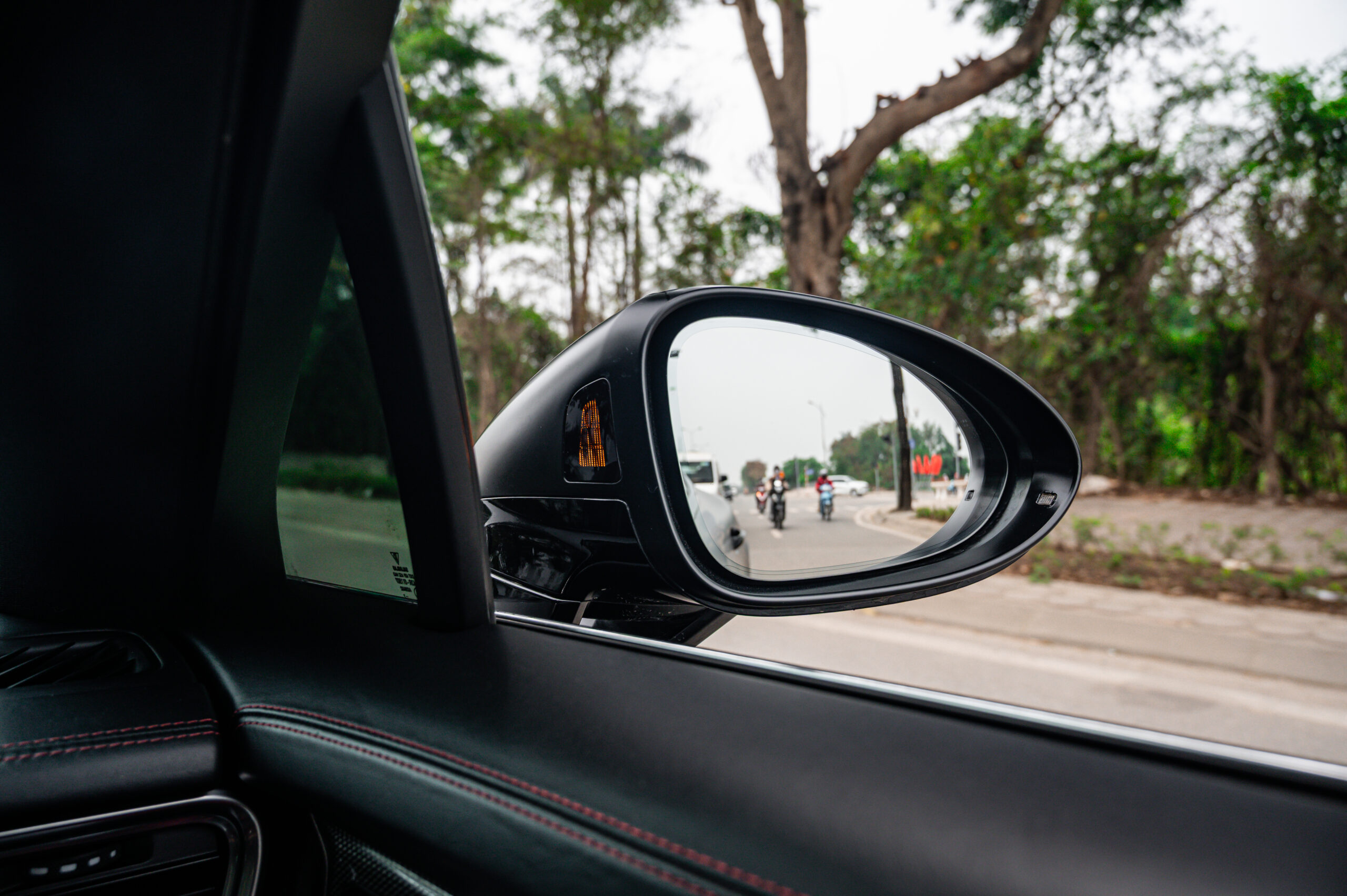 Porsche Panamera nâng cấp mâm Vossen HF-5, cánh gió Turbo, cảnh báo điểm mù chính hãng, hệ thống cảnh báo điểm mù chính là một trong những nâng cấp an toàn thiết yếu, góp phần bảo vệ người lái và hành khách trong mọi hành trình. Đây là công nghệ hiện đại giúp phát hiện các phương tiện trong vùng điểm mù mà gương chiếu hậu truyền thống không thể quan sát hết.