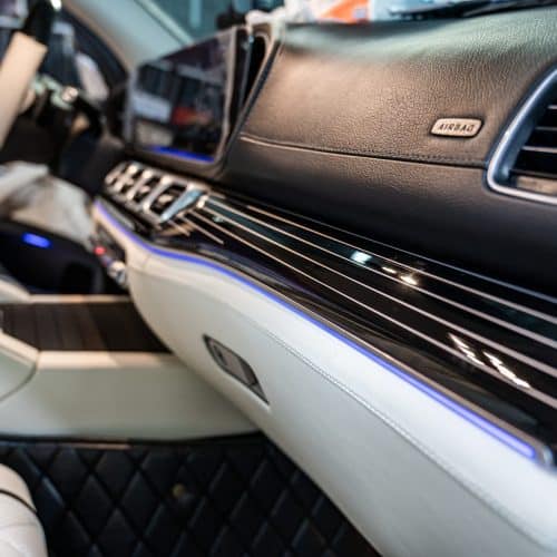 Lựa chọn ốp gỗ bóng Designo Piano Lacquer màu đen với vân nổi GLS 600 sẽ hô biến không gian nội thất chiếc Mercedes GLS của bạn thành một ” nhà hát di dộng ” đậm chất cổ điển và sang trọng.